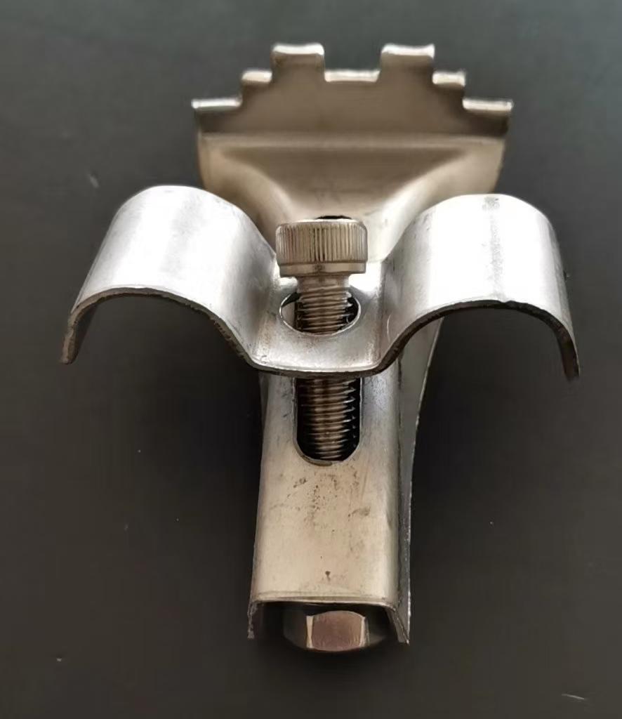 支撑抓件由齿形一面顶在钢梁上,把手通过圆孔螺丝与M卡固定。