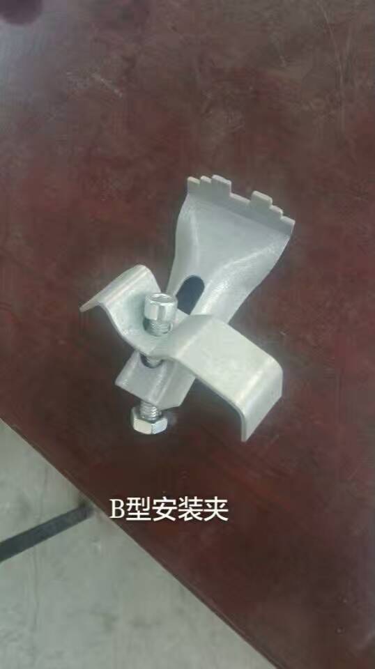 采用安装夹具有不破坏锌层和拆卸方便的优点,安装夹固定,每块板至少应采用四个安装夹,对较大的板块在可利用的支承物上多安装几个。